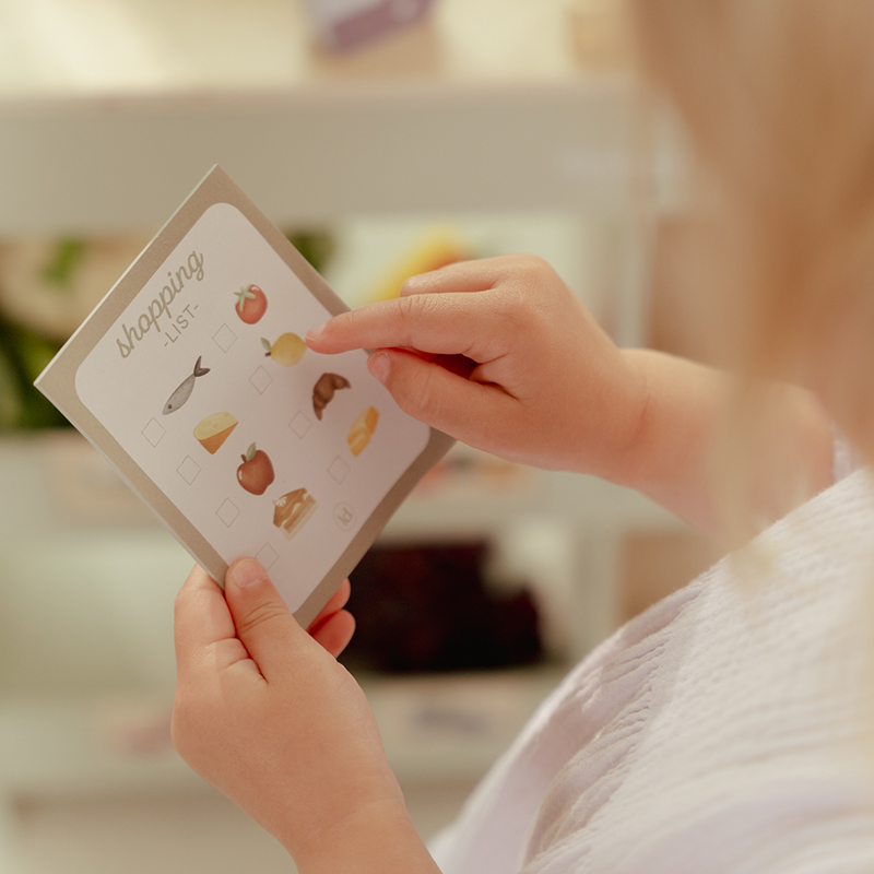 Boodschappen doen wordt een feestje! Met deze houten speelwinkelwagen haal je alles in huis wat je nodig hebt. Dankzij de ruime opbergplek passen al je boodschappen erin, zelfs als het lijstje lang is. Het houten clipje zorgt ervoor dat je boodschappenlijstje goed blijft zitten, zodat je niets vergeet. De set bevat diverse boodschappenproducten en een boodschappentas, zodat je direct aan de slag kunt. De winkelwagen is versierd met een leuke illustratie op de voorkant, wat het spelen nog leuker maakt. Wil je de ultieme winkelervaring? Combineer de winkelwagen met de marktkraam en geniet van eindeloos winkelen!