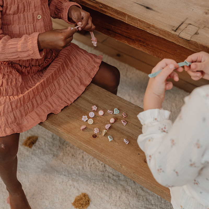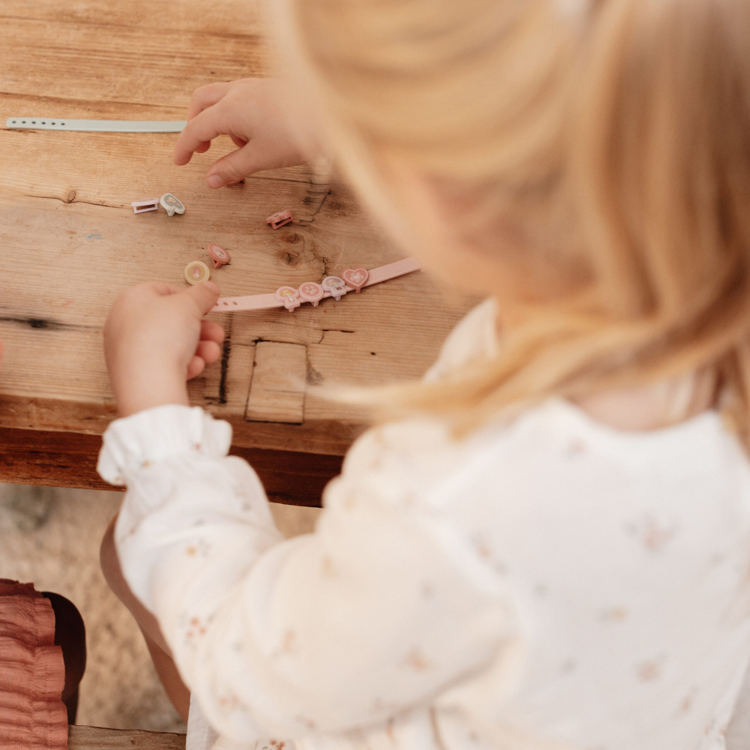 Betreed de magische wereld van sieraden maken! Laat de creativiteit van je kleintjes de vrije loop als ze hun eigen betoverende armbanden ontwerpen. Gaan ze voor elfjes, vooral bloemen of ook vlinders? Deze complete set bevat 3 armbanden en 18 schitterende bedeltjes, zodat kinderen eindeloos kunnen combineren en hun unieke stijl kunnen laten schitteren. Alles wat je nodig hebt om prachtige sieraden te maken zit in één kleurrijk doosje – ideaal als cadeau! Geschikt voor kinderen vanaf 3 jaar.